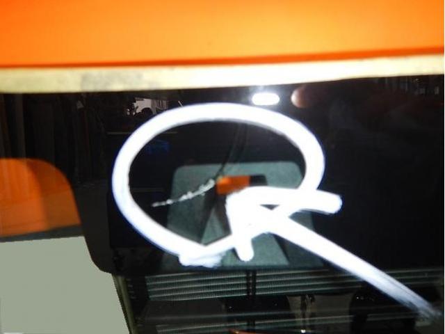 フロントガラスの破損箇所。