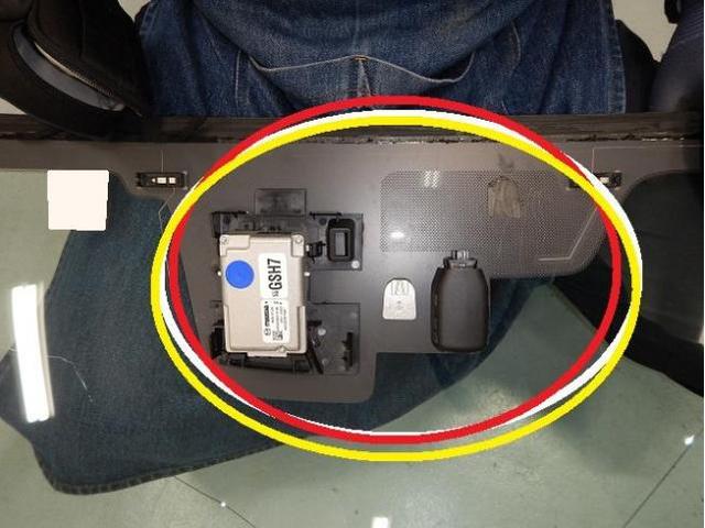 こちらが車内から見たフロントガラスのカメラとセンサー部分です。