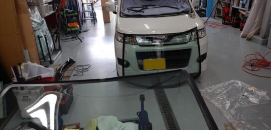 スズキ ワゴンR フロントガラス交換 輸入ガラスを取り寄せて交換しました ナビ用