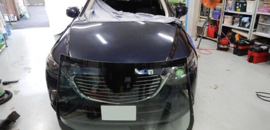 マツダ CX-3 フロントガラス交換 破損箇所フロントガラスの端に何かが当たった