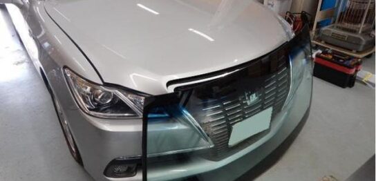 草刈り作業中の飛び石などで割れてしまう事が多いです。今回はガラスにヒビが入った状